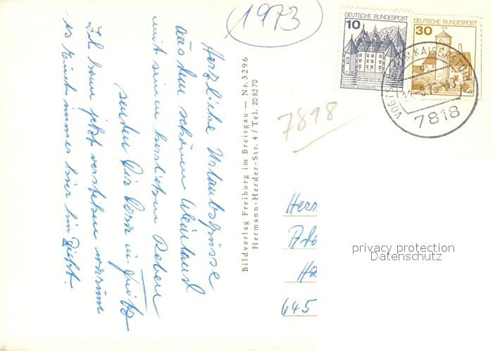 73596218 alte Postkarte Achkarren Gesamtansicht Landschaftspanorama Weinberge Kirche Brunnen postalisch gelaufen Erhaltung siehe scans [FriedD77] KatCode: 11110008315133