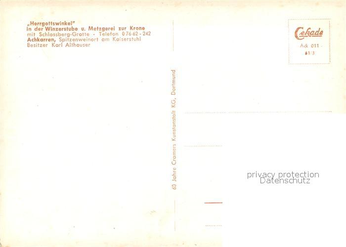 73684937 Achkarren Herrgottswinkel Winzerstube Gastraum postalisch nicht gelaufen Erhaltung siehe scans [FriedD77] KatCode: 11110008315133
