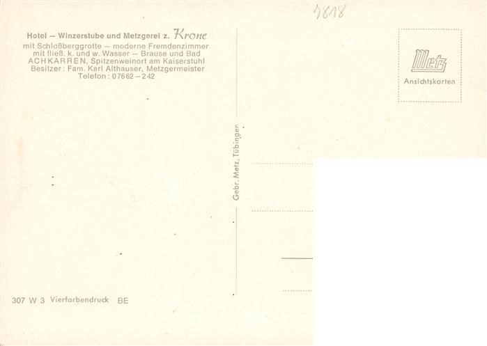 73929531 Achkarren Hotel Restaurant Cafe Winzerstube Zur Krone mit Schlossberg Grotte Gastraeume postalisch nicht gelaufen Erhaltung siehe scans [WerneD78] KatCode: 11110008315133