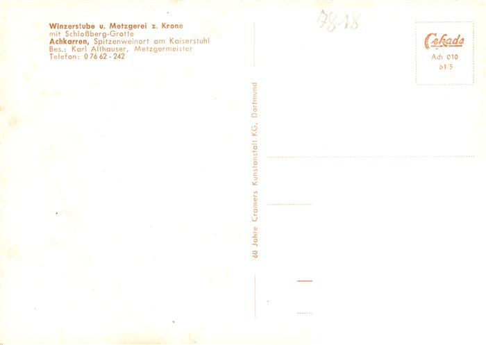 73929118 Achkarren Hotel Restaurant Cafe Winzerstube Zur Krone mit Schlossberg Grotte Gastraeume postalisch nicht gelaufen Erhaltung siehe scans [WerneD78] KatCode: 11110008315133