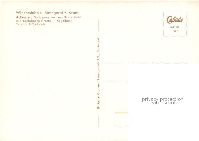 73854506 Achkarren Panorama Winzerstube Krone Schlossberg Grotte Gastraeume postalisch nicht gelaufen Erhaltung siehe scans [WerneD78] KatCode: 11110008315133
