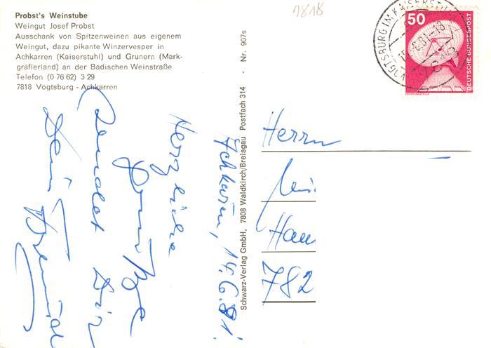 73929060 alte Postkarte Achkarren Probst’s Weingut und Weinstube Gastraum Weinkeller postalisch gelaufen Erhaltung siehe scans [WerneD78] KatCode: 11110008315133