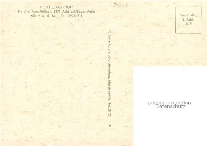 73648704 Achslach Regen Bayern Hotel Jaegerhof postalisch nicht gelaufen Erhaltung siehe scans [WerneD78] KatCode: 11110009276111