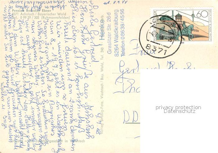 73654345 alte Postkarte Achslach Regen Bayern Pension Benedikt Ebner postalisch gelaufen Erhaltung siehe scans [WerneD78] KatCode: 11110009276111