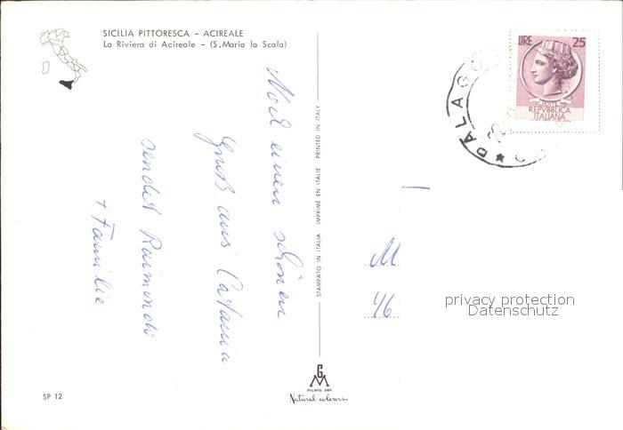 old postcard Acireale Riviera di Acireale S. Maria la Scala postalisch gelaufen Erhaltung siehe scans