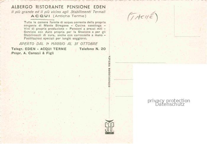 74008001 Acqui Terme Piemonte IT Albergo Pensione Eden postalisch nicht gelaufen Erhaltung siehe scans [FriedD77] KatCode: 11240