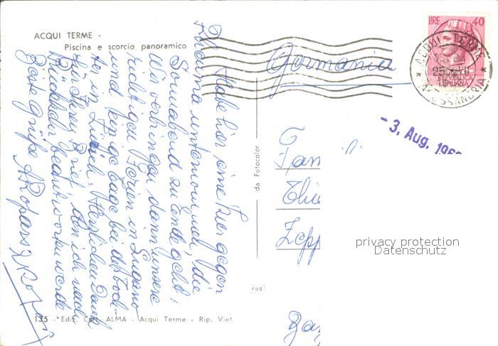 old postcard Acqui Terme Piscina e scorcio panoramico postalisch gelaufen Erhaltung siehe scans