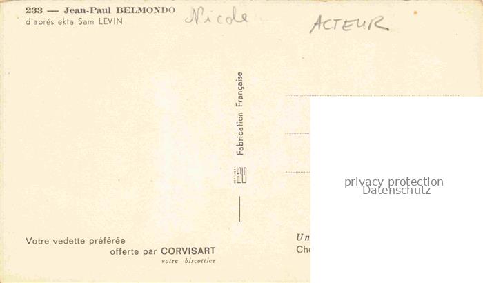 14103551 Acteur Actor SchauspielerIN Acrtrice Attore Attrice– Jean Paul Belmondo Sam Levin Corvisart Epinal postalisch nicht gelaufen Erhaltung siehe scans [SanaeD93] Sana Katcode 22560000001600