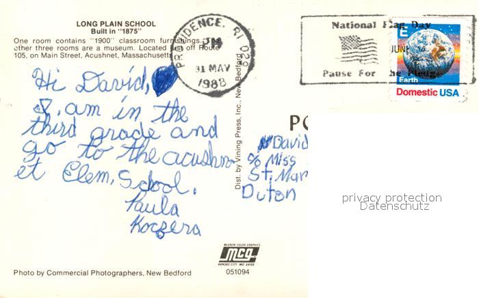 73130479 old postcard Acushnet Long Plain School postalisch gelaufen Erhaltung siehe scans [KathaD81] KatCode: 14140230000000