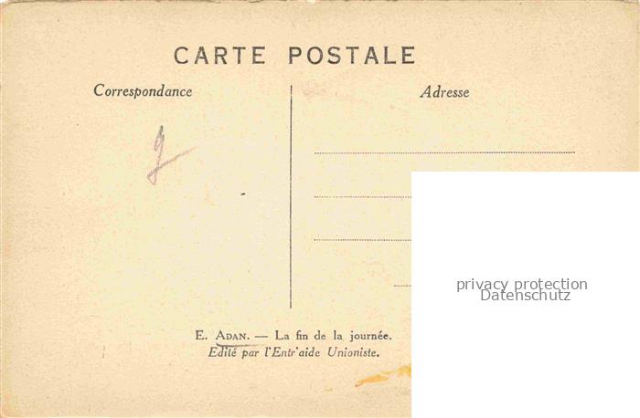 74011492 Adan E. Kuenstlerkarte La fin de la journee Feld arbeit postalisch nicht gelaufen Erhaltung siehe scans [IrynaD87] KatCode: 22240000003200