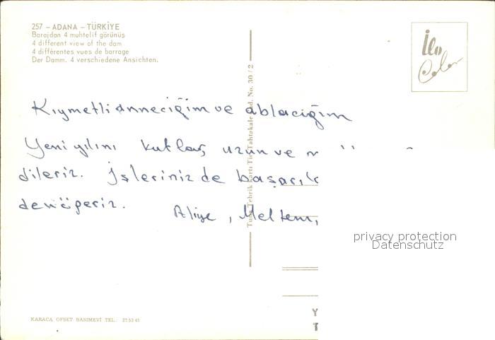 Adana Baraj Damm Teilansichten Yacht postalisch nicht gelaufen Erhaltung siehe scans