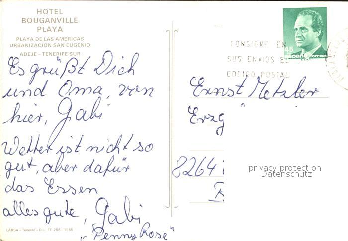 old postcard Adeje Hotel Bouganville Playa Las Americas postalisch gelaufen Erhaltung siehe scans