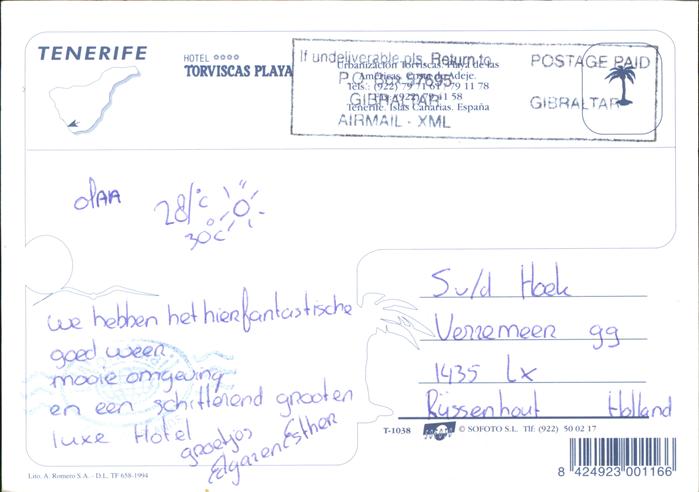 old postcard Adeje Hotel Torviscas Playa Swimming Pool postalisch gelaufen Erhaltung siehe scans