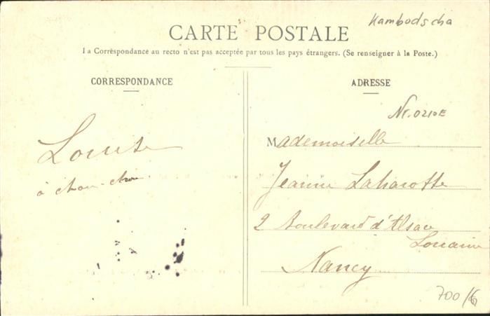 70962835 Adel Asien Fetes donnees a Nancy Koenig Kambodscha postalisch gelaufen Alte Ansichtskarte Postkarte alte Postkarte Katcode 22260000003000