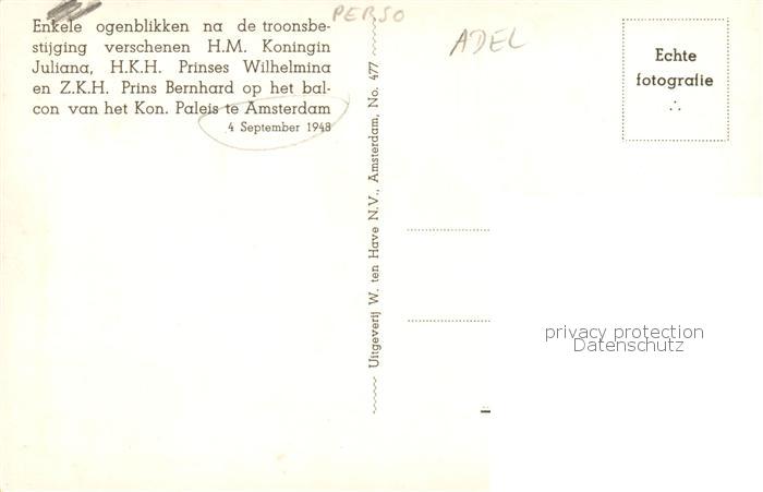 Adel H.M.koenugin Juliana H.K.H.Wilhelmina Z.K.H.Prins Bernhard Amsterdam