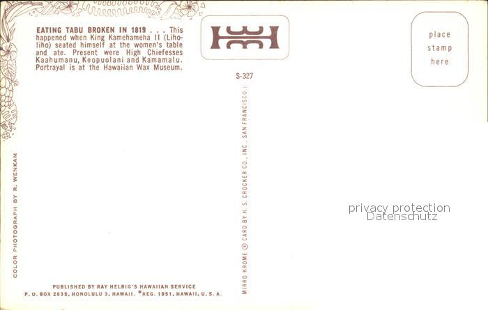 Adel Hawaii King Kamehameha II. Liholiho Eating Tabu Broken in 1819 postalisch nicht gelaufen Erhaltung siehe scans
