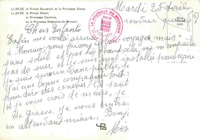 74028664 alte Postkarte Adel Monaco Fuerstenhaus Prince Souverain Princesse Grace postalisch gelaufen Erhaltung siehe scans [SanaeD93] KatCode: 22260000001800