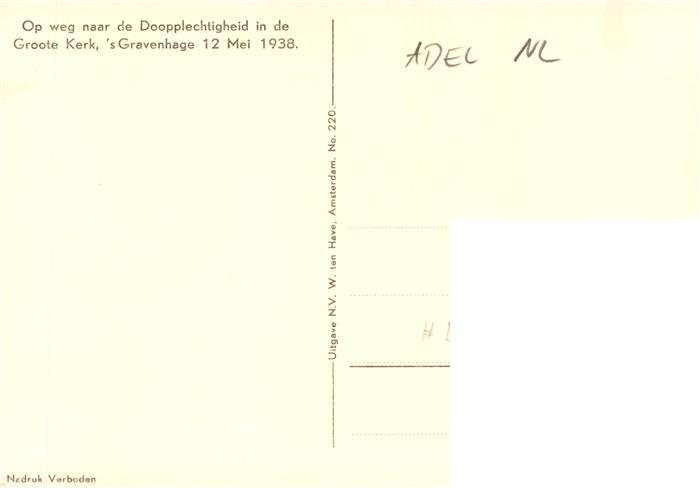73894664 Adel Niederlande Doopplechtigheid Groote Kerk Gravenhage postalisch nicht gelaufen Erhaltung siehe scans [IrynaD87] Iryn Katcode 22260000002900
