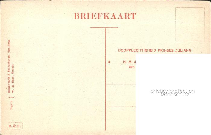 11938654 Adel Niederlande Doopplechtigheid Prinzessin Juliana Paleis KatCode 22260000002900