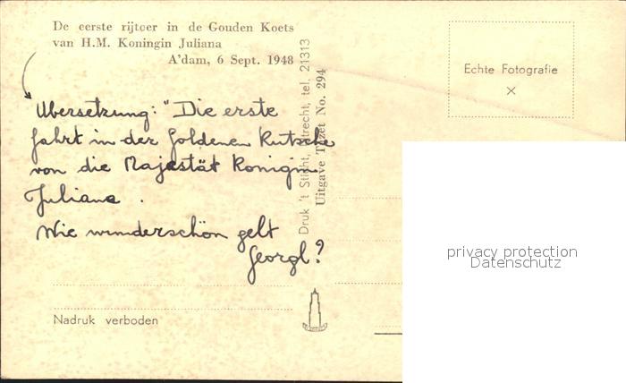 11941348 Adel Niederlande Gouden Koets Königin Juliana Erste Fahrt KatCode 22260000002900