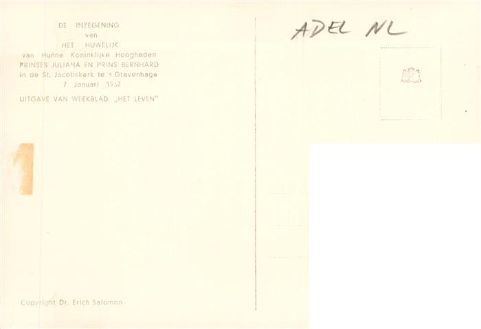 73894656 Adel Niederlande Inzegening Huwelijk postalisch nicht gelaufen Erhaltung siehe scans [IrynaD87] Iryn Katcode 22260000002900
