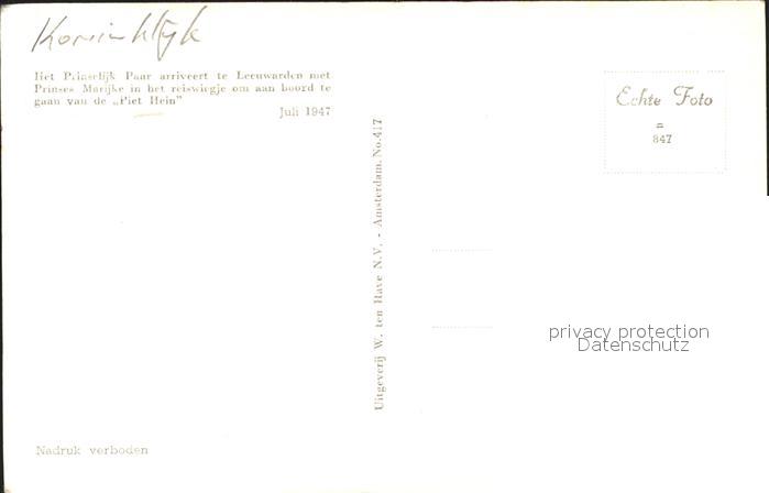 Adel Niederlande Koenigin Juliana Prinz Bernhard Prinzessin Prinzessin Marijke Leeuwarden Piet Hein postalisch nicht gelaufen Erhaltung siehe scans