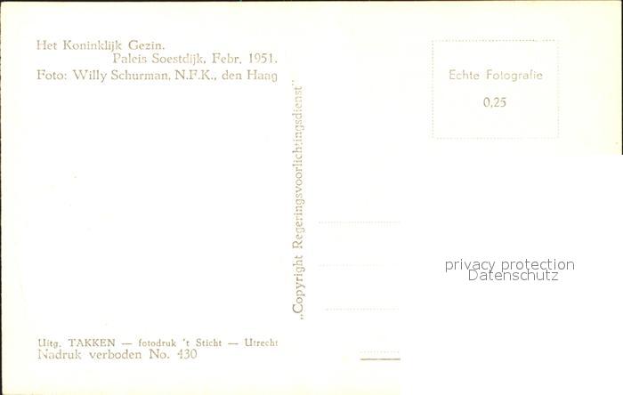 11941406 Adel Niederlande Königin Juliana Prinz Hendrik Prinzessinen Beatrix Irene Margriet Christina KatCode 22260000002900