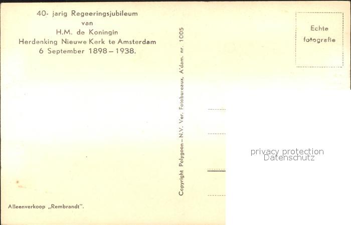 Adel Niederlande Koenigin Wilhelmina 40-jarig Regeeringsjubileum Nieuwe Kerk postalisch nicht gelaufen Erhaltung siehe scans