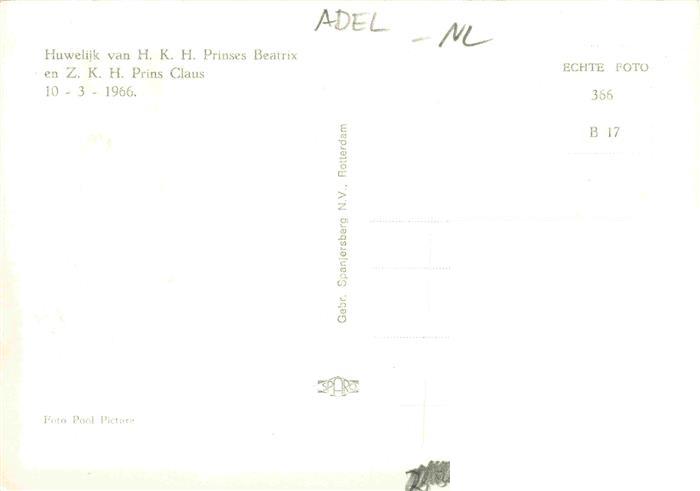 74033916 Adel Niederlande Koenigshaus Huwelijk HKH Prinses Beatrix ZKH Prins Claus postalisch nicht gelaufen Erhaltung siehe scans [IrynaD87] KatCode: 22260000002900