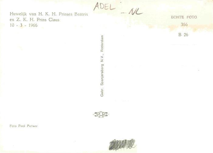 Adel Niederlande Koenigshaus Huwelijk HKH Prinses Beatrix ZKH Prins Claus