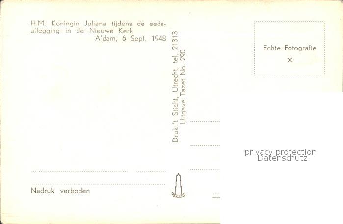 Adel Niederlande Koningin Juliana Eedsaflegging postalisch nicht gelaufen Erhaltung siehe scans