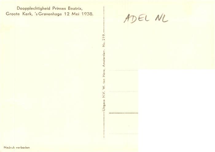 73894661 Adel Niederlande Prinses Beatrix Groote Kerk,´s Gravenhage postalisch nicht gelaufen Erhaltung siehe scans [IrynaD87] Iryn Katcode 22260000002900