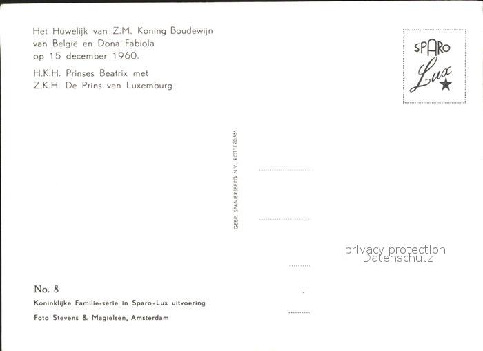 Adel Niederlande Prinses Beatrix Prins van Luxemburg Huwelijk Koning Boudewijn van Belgie Dona Fabiola postalisch nicht gelaufen Erhaltung siehe scans