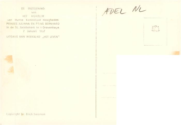 73894675 Adel Niederlande Prinses Juliana Prins Bernhard postalisch nicht gelaufen Erhaltung siehe scans [IrynaD87] Iryn Katcode 22260000002900