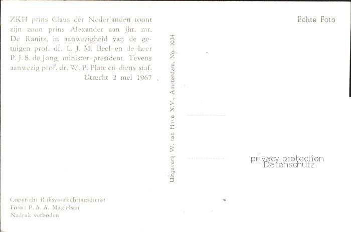 Adel Niederlande Prinz Claus Prinz Willem-Alexander Mr. De Ranitz Professor Beel postalisch nicht gelaufen