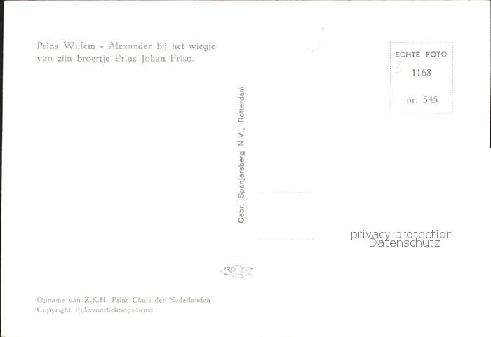 Adel Niederlande Prinz Willem-Alexander Wiege Prinz Johan Friso postalisch nicht gelaufen Erhaltung siehe scans