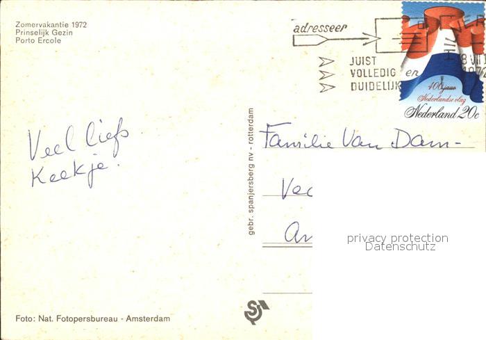 alte Postkarte Adel Niederlande Prinzessin Beatrix Prinz Claus Prinzen Porto Ercole postalisch gelaufen Erhaltung siehe scans