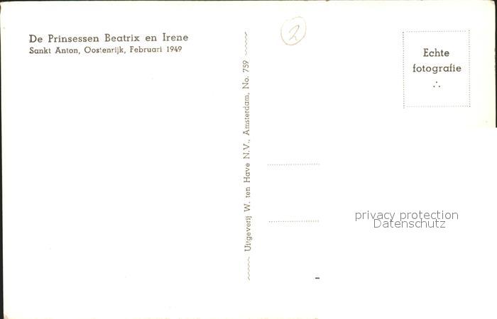 Adel Niederlande Prinzessin Beatrix Prinzessin Irene Sankt Anton Skifahren postalisch nicht gelaufen Erhaltung siehe scans