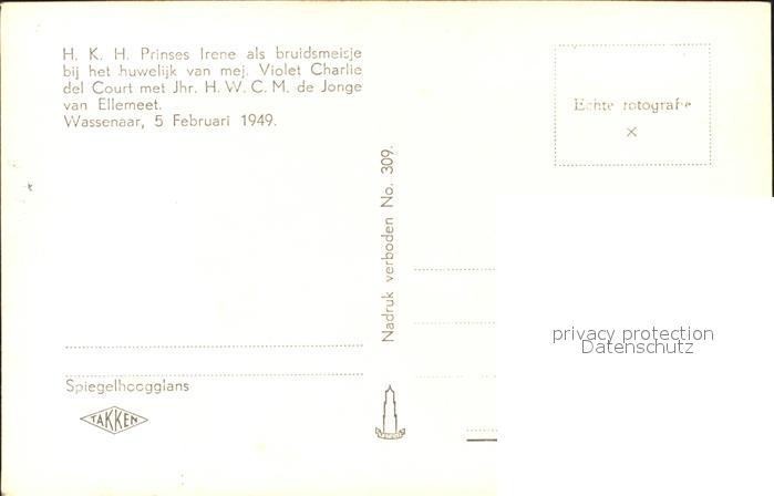 11941350 Adel Niederlande Prinzessin Irene Bruidsmeisje Huwelijk Violet Charlie del Court KatCode 22260000002900