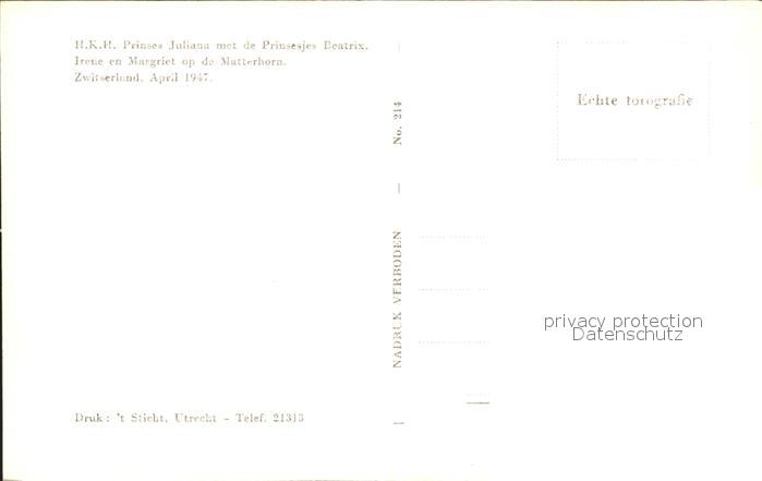Adel Niederlande Prinzessin Juliana Prinzessinen Beatrix Irene und Margriet Matterhorn Ski postalisch nicht gelaufen Erhaltung siehe scans