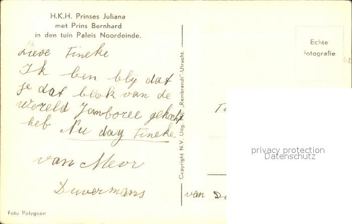 Adel Niederlande Prizessin Juliana Prinz Bernhard Paleis Noordeinde postalisch nicht gelaufen Erhaltung siehe scans