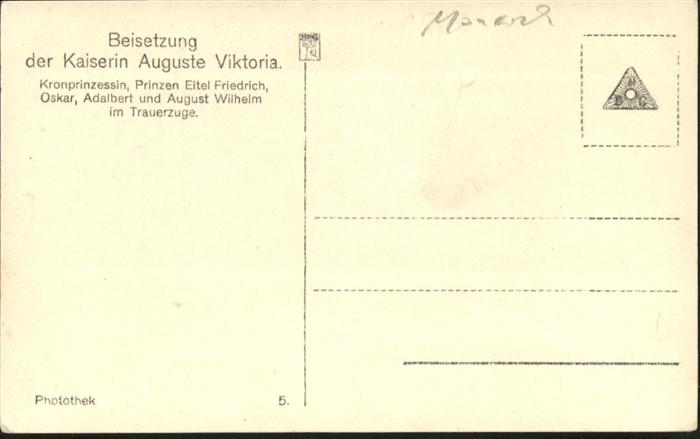 40986899 Adel Preussen Beisetzung Kaiserin Auguste Viktoria Trauerzug Kronprinzessin Cecilie Prinz Eitel Friedrich Oskar Adalbert August Wilhelm KatCode 22260000002200