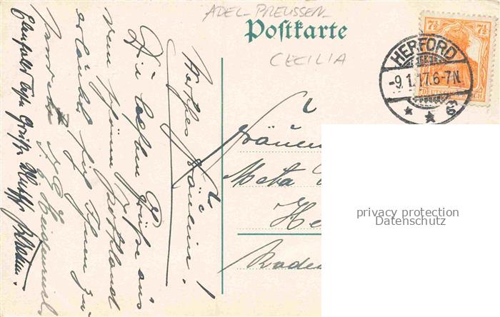 74089668 alte Postkarte Adel Preussen Monarchie Cecilia Engel postalisch gelaufen Erhaltung siehe scans [SanaeD93] KatCode: 22260000002200