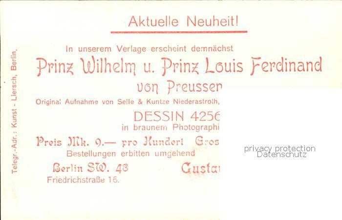 Adel Preussen Prinz Wilhelm Prinz Louis Ferdinand postalisch nicht gelaufen Keine Postkarte (siehe scan) Erhaltung siehe scans