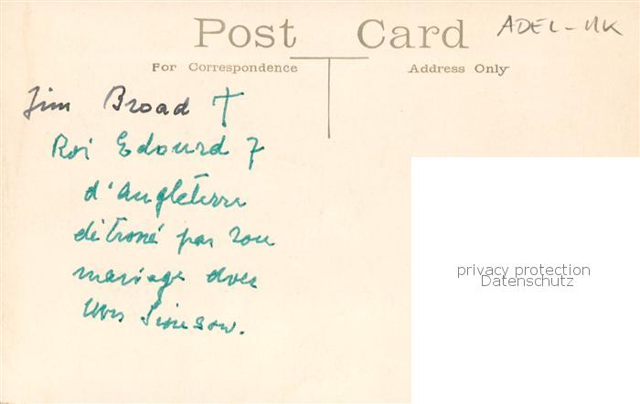 73884963 Adel UK Jim Broad Roi Edourd postalisch gelaufen Erhaltung siehe scans [IrynaD87] alte Postkarte Iryn Katcode 22260000002700