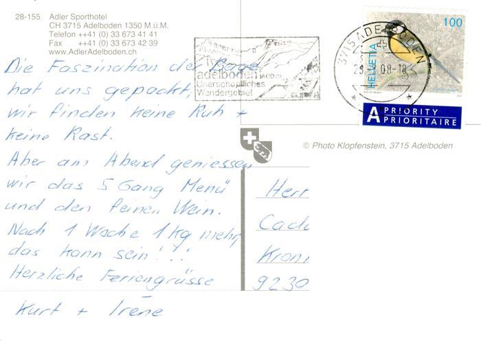 13920949 alte Postkarte Adelboden BE Adler Sporthotel postalisch gelaufen Erhaltung siehe scans [FriedD77] KatCode: 11470060170196