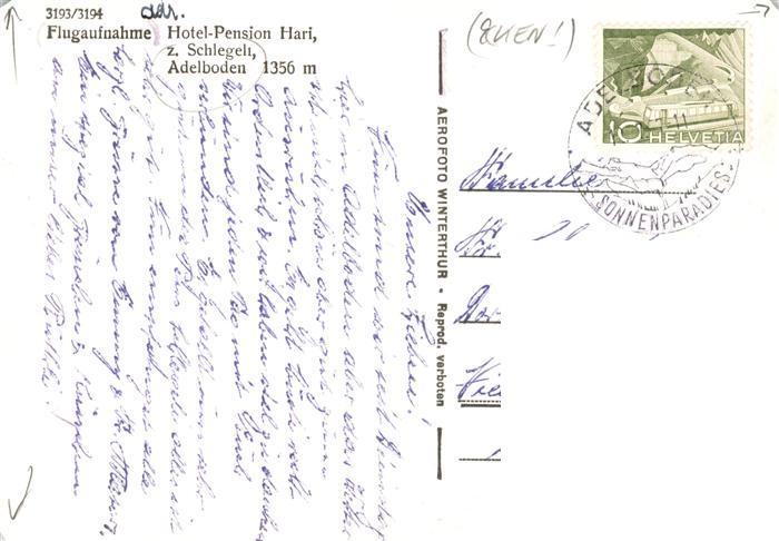 13913125 alte Postkarte Adelboden BE Hotel Pension Hari Fliegeraufnahme postalisch gelaufen Erhaltung siehe scans [FriedD77] KatCode: 11470060170196