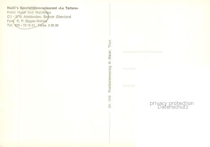 13865370 Adelboden BE Huldis Spezialitaetenrestaurant Le Tartare postalisch nicht gelaufen Erhaltung siehe scans [WerneD78] KatCode: 11470060170196