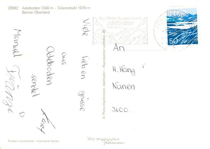 13921176 alte Postkarte Adelboden BE Sillerenbuehl Berggasthaus Schwebebahn Panorama Skipiste postalisch gelaufen Erhaltung siehe scans [FriedD77] KatCode: 11470060170196