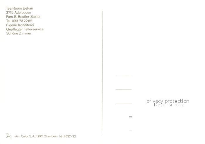 13866531 Adelboden BE Tea Room Bel Air Fliegeraufnahme postalisch nicht gelaufen Erhaltung siehe scans [WerneD78] KatCode: 11470060170196